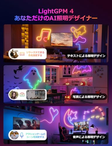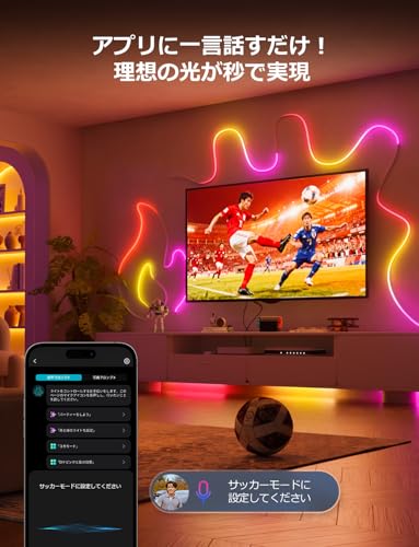 AIによる光のデザイン生成や音楽との同期機能を搭載したこのテープライトは、ただの照明という枠を超えた“空間演出ツール”として、数多くのユーザーから高い評価を得ています。