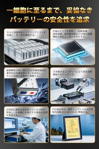 さらに、発火防止アルミ加工やPSE認証取得済みバッテリーの採用により、安全性にも細心の注意が払われています。