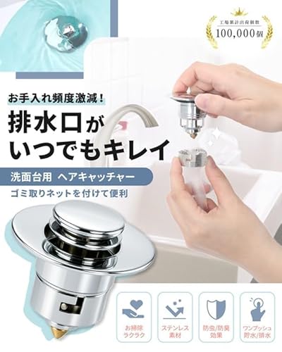 「【お手入れ簡単で見た目もスッキリ】EMARINO 洗面台 ヘアキャッチャー ゴミ受け 洗面所 排水口 ゴミ受け 排水栓 (キャッチャー(ネット100枚付き))」は、洗面所の排水口の清掃をより簡単にし、見た目も美しく保つことができる人気商品です。