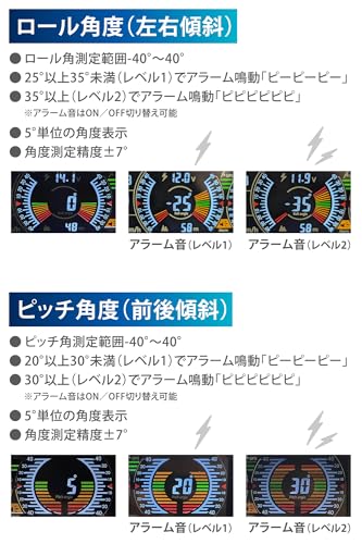 - 【メリット】:走行中の傾きや高度、方位を一目で把握でき、安全運転の目安になる。