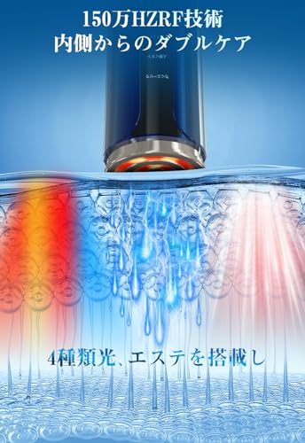 この2025年新モデルのEMS美容器は、EMS微電流による筋肉刺激、RF技術による肌の深層加温、さらには4色LED光エステや超音波振動、イオン導入といった多彩な機能を1台に集約し、幅広い肌悩みに対応しています。