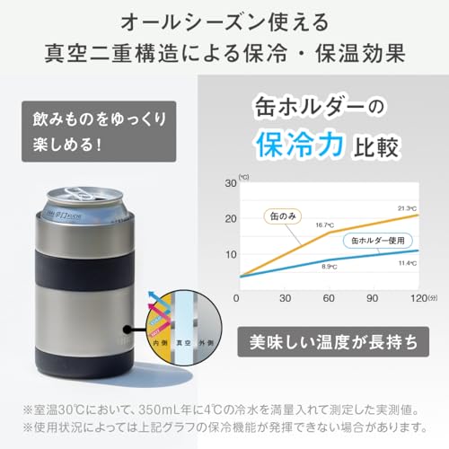 多くのユーザーが抱える「飲み物がすぐ温くなる」「缶が直接手に冷たくて持ちにくい」という悩みを解決する設計となっています。