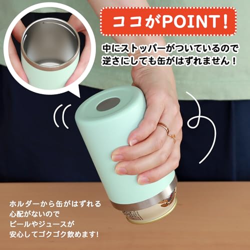 この缶ホルダーはステンレス製の二重構造で、缶飲料の温度を効果的に維持します。