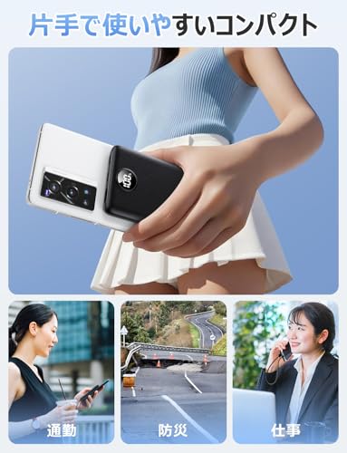 • 20000mAhの大容量により、スマホを複数回フル充電可能で、外出先や出張時もバッテリー切れの不安を軽減します。