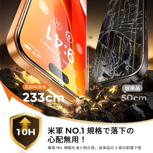 本製品は米軍No.1規格の航空材料を採用しており、硬度10Hの耐衝撃強化ガラスでiPhone 17 Proの画面をしっかり守ります。