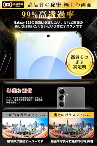 Boiyiklonn Galaxy S25 ガラスフィルム (2枚)+カメラフィルム(2枚)【日本旭硝子製】 硬度9H 耐衝撃 高透過率 自動吸着 気泡防止 飛散防止 撥水撥油 ギャラクシー S25 保護フィルム 中間 画像