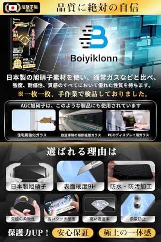Boiyiklonnのガラスフィルムは日本旭硝子製の高品質な素材を使用し、硬度9Hの高い耐衝撃性能を誇ります。