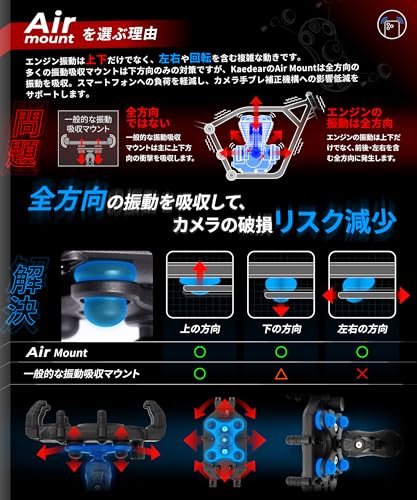 • 振動吸収機能: 特許技術のAirマウントが振動を効果的に減衰し、スマホの安定性を高めています。