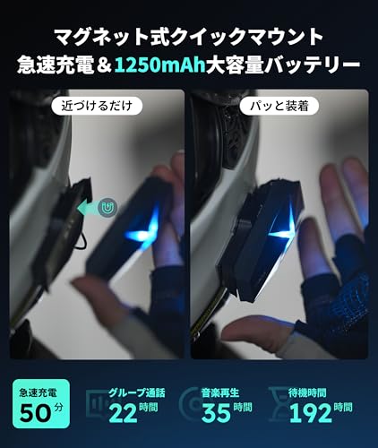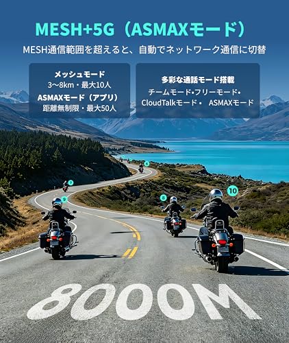 従来のインカムでは、同時通話可能人数の制限や通信距離の問題でストレスを感じることもありましたが、ASMAX F1はBluetooth5.3と最新のメッシュ通信技術を採用し、安定かつ明瞭な接続を実現しています。