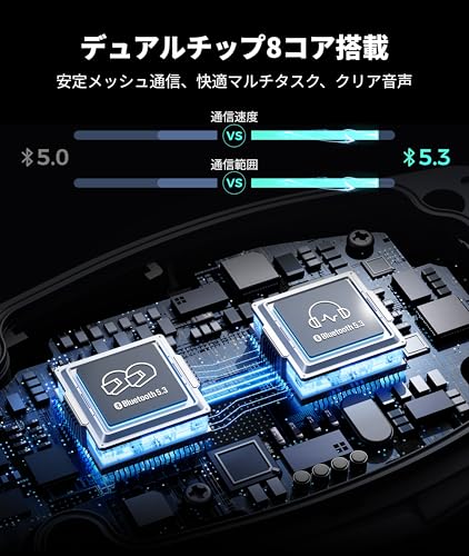 ASMAX F1は、最新のBluetooth 5.3規格を搭載すると同時に、デュアルチップ・オクタコアCPUを備えているため、高負荷のメッシュ通信でも遅延や途切れを最小限に抑えられます。