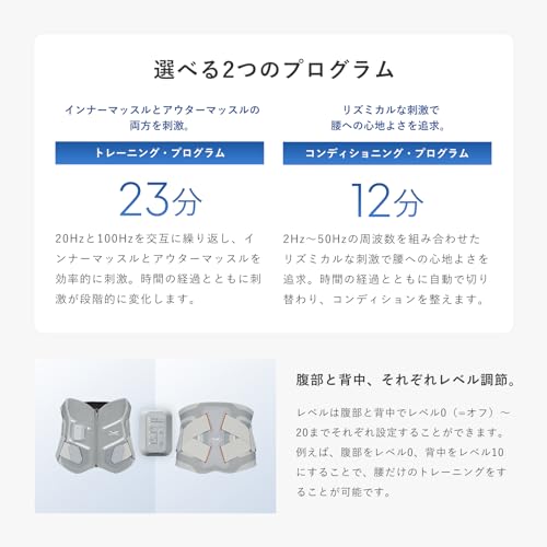 - EMSによる腹筋・腰部の筋肉収縮を促進し、効率的なトレーニングが可能