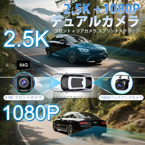 フロント2.5Kとバック1080Pカメラによる安全サポート