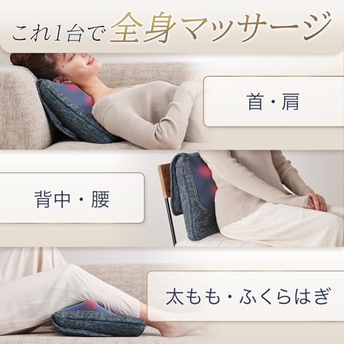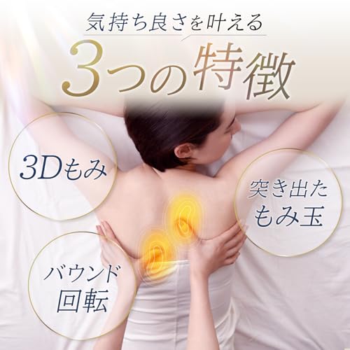 このマッサージクッションは、首・肩・腰・背中と体の複数部位に対応し、3Dもみ技術で深い指圧感を提供します。