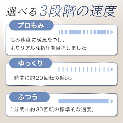 3段階の強さ調整機能により、自分の好みや体調に応じたマッサージが可能です。