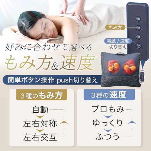 このマッサージクッションは、3Dもみ機能を搭載し、手技に近い立体的な揉み心地を再現しています。