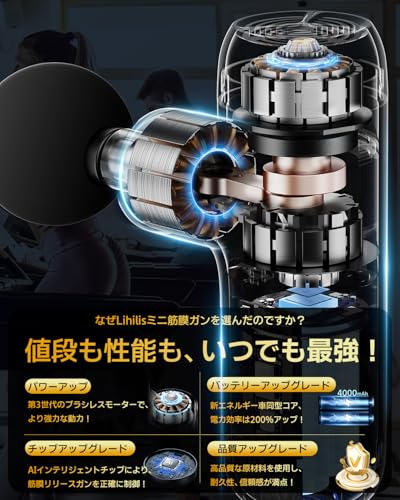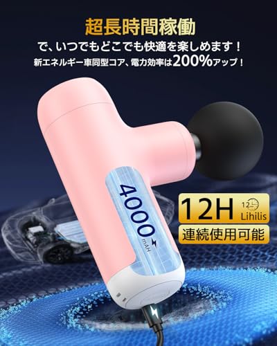LIHILISの筋膜リリースガンは、Type-C急速充電に対応し、4000mAhの大容量バッテリーを搭載しています。