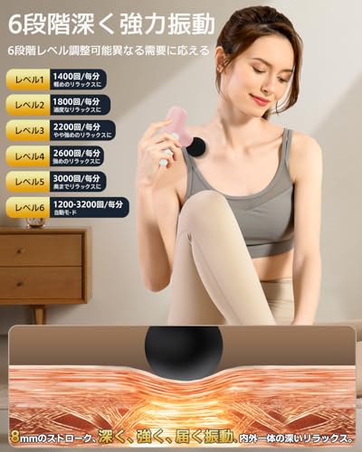 - 6段階の超強力振動モード:硬い筋肉から繊細な部位まで対応可能