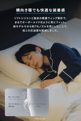 また、軽量かつコンパクト設計で耳への負担を抑え、寝返りを打っても外れにくい設計が特徴です。