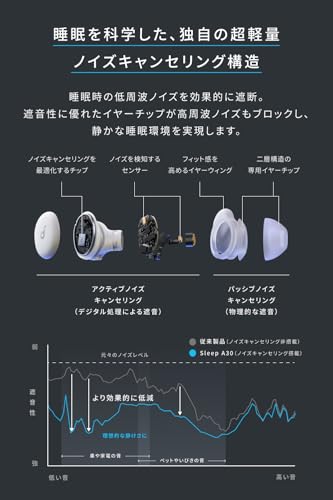 快適な睡眠環境を求める方に向けて、Anker Soundcore Sleep A30は特化した機能を備えたワイヤレスイヤホンです。
