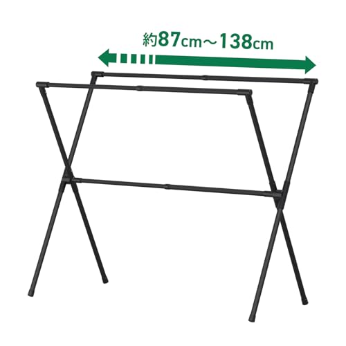 幅87cmから138cmまで伸縮可能なX型スタンドは、狭いベランダから広い室内スペースまで柔軟に対応できる点が使いやすさを押し上げています。
