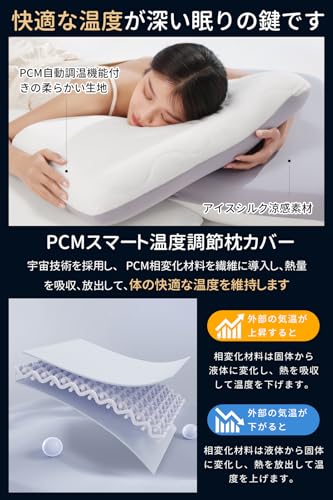 この枕は、低反発素材との相乗効果で体圧を適切に分散しつつ、通気性冷感カバーによる温度調節機能を備えています。