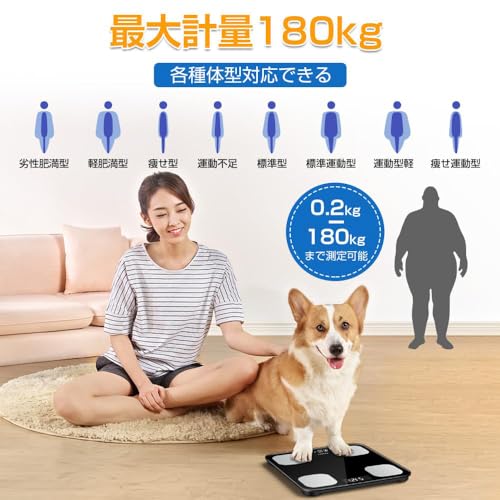 【2025新登場】体重計 体脂肪計 体組成計 Bluetooth スマホ連動 ヘルスメーター 高精度 軽量 収納 ボディスケール 多機能測定 体重 体脂肪率 筋肉率 体水分率 BMI など測定 iOS/Android対応 日本語取扱説明書 (ブラック) 中間 画像