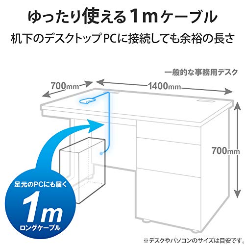 • 柔軟な設置環境:ケーブル1mの長さは設置の自由度が高く、机の上やパソコン周辺の環境に合わせて使いやすいです。