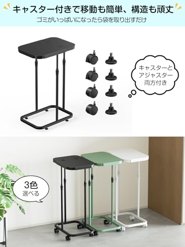 さらに、キャスターとアジャスターの両方が付いているため、掃除やゴミ捨ての際も移動がスムーズになり日々のストレス軽減につながります。