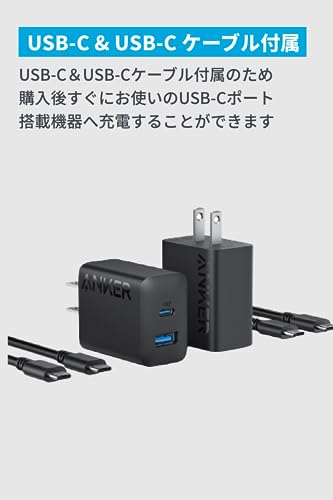 Anker Charger (20W, 2-Port) with USB-C & USB-C ケーブル 2個セット (20W USB-C&USB-Cケーブル付属 2ポート急速充電器)【PSE技術基準適合/USB PD対応/PowerIQ搭載/コンパクトサイズ】 Android スマートフォン iPad その他 各種機器対応 (ブラック) 中間 画像