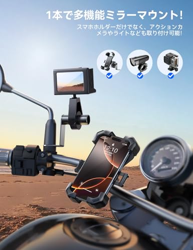 【一台二役!】バイク スマホホルダー スタンド JOYROOM ミラーマウント付き 1秒着脱 超強振動吸収 原付 スマホ ホルダー オートバイ 「ワンタッチで自動ロック」 片手操作 バイク用 携帯ホルダー 360度回転可能 落下防止 15-40mm ハンドルバー アクションカメラやライトなども取り付け可能 iPhone 16 シリーズ, iphone&Androidの各ブランドの全ての機種対応 最後 画像