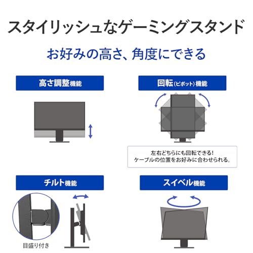 さらに高さ調整や縦横回転が可能なVESA対応スタンドを搭載し、自分のスタイルに合ったポジショニングで作業やゲームを快適に楽しめます。