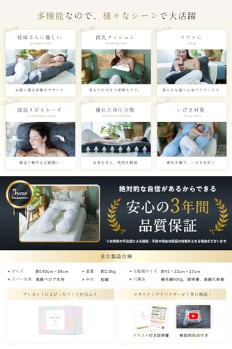 授乳時のクッションとしても使いやすく、シングルベッドでの使用にも適した140×80cmのサイズ感は、限られたスペースでも快適さを実感できます。