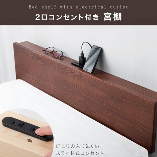 宮棚・2口コンセント付きで利便性も高く、すのこベッドの通気性が快適な睡眠環境をサポート。