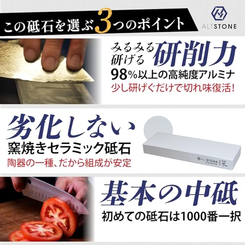 ALTSTONEの「深 FUKAMI」中砥石(1000番)は滑らかな研ぎ味が特長の日本製セラミック砥石で、多くのユーザーから高評価を得ていますが、購入前にはいくつかのポイントを押さえる必要があります。