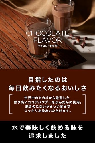 チョコレート風味は自然な甘さを実現し、毎日飲み続けやすいと評判です。