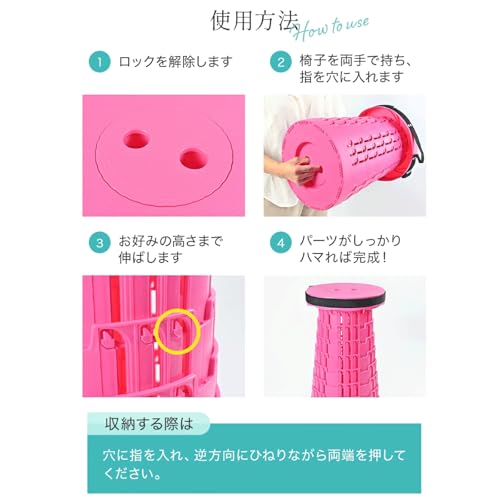 • 釣り:伸縮式で地面の高さに合わせやすく、長時間座りっぱなしの疲労を軽減します。