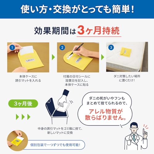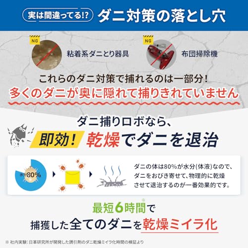 信頼できる日本製であり、殺虫剤成分ゼロの誘引マットがダニ増殖を抑制。