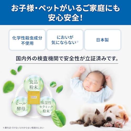 殺虫剤成分が入っていないため、小さなお子様やペットがいる環境でも誤飲や接触による健康被害の心配が少なく、家族みんながいる日常空間に適しています。