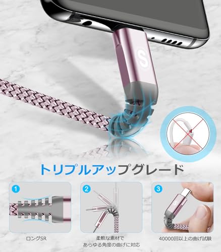 USB Type C ケーブル【3M/2本セット】Sweguard USB-C & USB-A 3.1A USB C ケーブル【QC3.0対応急速充電】タイプc 充電 iPhone17 16/iPhone 15 Pro MAX, iPad Pro,Samsung Galaxy S25/S24/S23/S22/S21/S20,Pixel,usb type-c機器と互換性があり (ピンク) 最後 画像