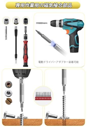 このセットの磁気付きドライバーは、小さなネジを落としにくく作業効率の向上に寄与します。