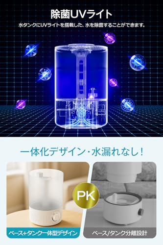 特に卓上で使いやすく、アロマ対応やUVライト除菌機能を備えたこの加湿器は、家族の健康を守りながら清潔なミストを提供します。