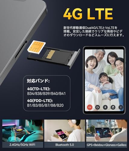 このAndroid15 タブレットはSIMフリー対応で4GLTE通信が可能なモデルと、Wi-Fiモデルが存在します。