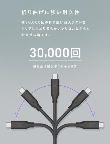 このケーブルは、耐久性の高いシリコン素材を採用しているため、ひとつの製品で長期間の使用が期待できます。