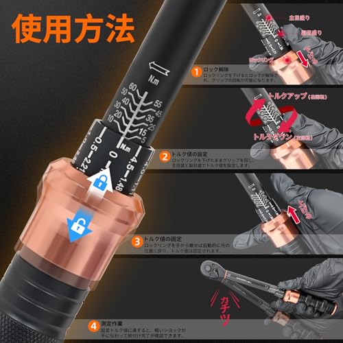 - メリット:高精度で計測可能、見やすいダブル目盛りで操作が簡単、幅広いトルク範囲で多用途に対応