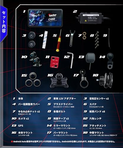 5.5インチの見やすいディスプレイと、SONY製スタービスIMX-307センサー搭載の高性能ドライブレコーダーを兼ね備えたこの製品は、ドライブレコーダー機能だけでなく、空気圧センサーやカープレイ・アンドロイドオート対応など、多様な機能を一体化しています。