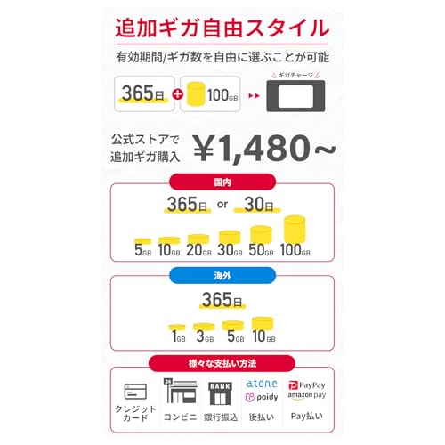 - 契約や月額料金無しで、必要な時にギガをチャージ可能