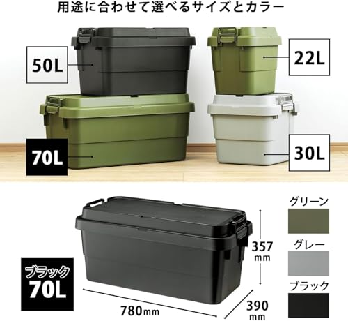 リス(RISU) 収納ボックス スタッキング トランクカーゴ 70L ブラック 日本製 TC-70S コンテナ ボックス 屋外収納 キャンプ 防水 GHON111 最後 画像