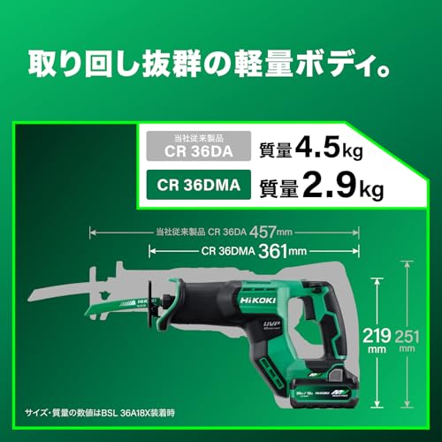 - 36V充電式セーバソー CR36DMA(NN)との相性を最適化し、パワーを最大限に引き出す設計。
