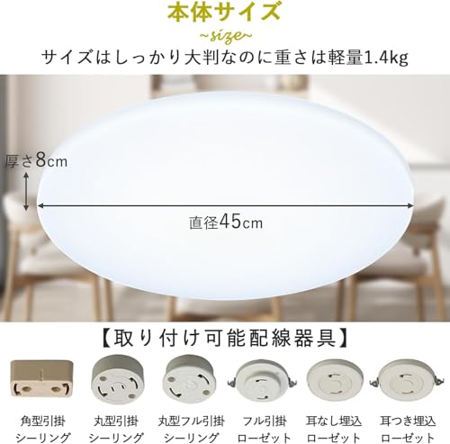 全般的に、同クラスのLEDシーリングライトと比較してもバランスの良い機能と価格設定であり、初めてLEDシーリングライトに切り替える方にとっても扱いやすい製品です。