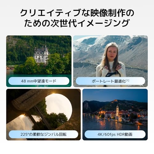 これに加え、225度ジンバル回転とActiveTrack 360°追尾機能が、動く被写体をスムーズに撮影でき、動画や写真のクオリティを格段に高めます。